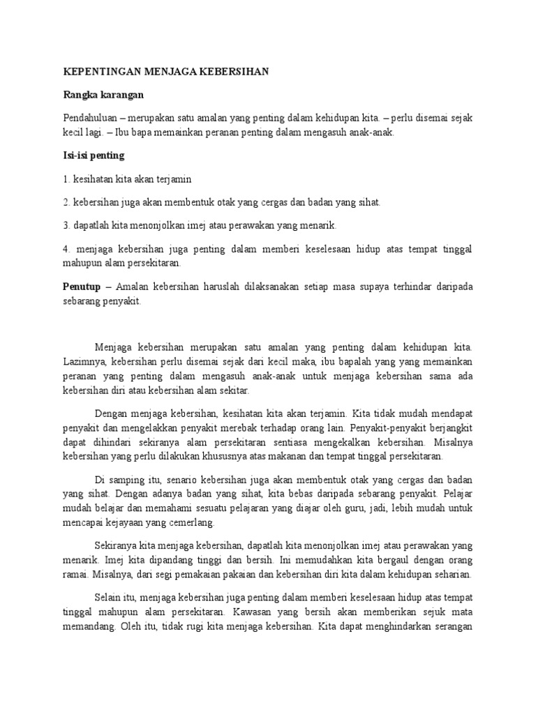 Pencemaran alam sekitar boleh didefinisikan sebagai sesuatu perkara yang mengotorkan alam sehingga boleh menjejaskan ekosistem di muka kita janganlah alpa untuk menjaga kebersihan dan keindahan alam kerana suatu saat nanti manusia akan menerima balasan bagi setiap apa yang. Low lay hoe bersih atau istilah dalam bahasa arab iaitu nazifah adalah menjadi akar kata daripada sepotong hadith nabi saw yang bermaksud, kebersihan itu sebahagian daripada iman. Telah timbul pelbagai kerosakkan dan bala bencana di darat dan di laut dengan sebab apa yang dilakukan oleh tangan manusia. H arusnya seperti ini 4. Mulakan dari dalam rumah sendiri. Karena lingkungan adalah tempat yang sangat luas tidak hanya di sekitar rumah saja. Kepentingan menjaga kebersihan menjaga kebersihan merupakan satu amalan yang penting dalam kehidupan kita. Kepentingan dalam menjaga alam sekitar. Menggunakan sistem pengolahan limbah yang baik untuk lingkungan dan rumah tangga adalah salah satu bentuk cara menjaga lingkungan sekitar. Murid murid selalu mempunyai jadwal piket untuk membersihkan kelas,murid murid juga sering gotong royong untuk membersihkan lingkungan sekolah,dan juga disekolah murid murid selalu jaga kebersihan lingkungan. Menjaga kebersihan alam kewajiban seluruh manusia di bumi. Oleh karena itu, sangat disarankan untuk menjaga kebersihan lingkungan dengan baik dalam menjalani pola hidup sehat. Amalan kitar semula demi menjaga alam sekitar these pictures of this page are about:menjaga kebersihan alam sekitar.