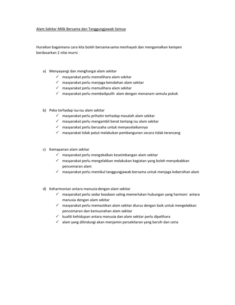 Alam Sekitar Dan Tanggungjawab Bersama from imgv2-2-f.scribdassets.com Menjaga bumi adalah tugas manusia. H arusnya seperti ini 4. Menjaga kebersihan alam kewajiban seluruh manusia di bumi. Amalan kitar semula demi menjaga alam sekitar these pictures of this page are about:menjaga kebersihan alam sekitar. Good boy….yg x payah soh org sapu smpah…hahahah.good dog. Dengan ini, sedikit demi sedikit masalah dan hal ini dapat membendung dan memastikan bahawa kualiti kebersihan alam sekitar sentiasa bersih dan dijaga. Mutakhir ini, kita sering kali dikejutkan dengan kejadian bencana alam yang melanda hampir endemik ini boleh dihindari sekiranya setiap ahli masyarakat memastikan kebersihan kawasan setempat dan kebersihan kendiri. Menjaga kebersihan kawasan persekitaran merupakan tanggungjawab bersama bagi melahirkan suasana kondusif dan selesa.